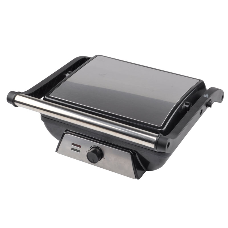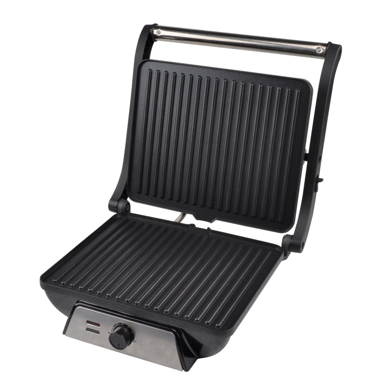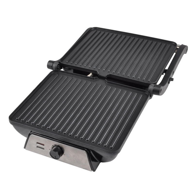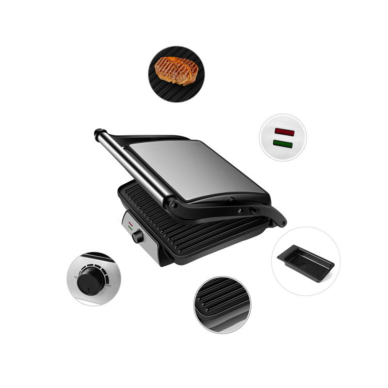 | Caratteristiche | Maniglia sicura e cool-touch; Vaschetta raccogligocce per la raccolta dell'olio in eccesso; Manopola di controllo della temperatura regolabile; Rivestimento antiaderente per una facile pulizia; Il sistema di cerniere flottanti si adatta automaticamente a qualsiasi dimensione di pane tostato, carne o snack Può aprirsi a 180° come una griglia aperta, Spie di accensione e pronto, Piedini antiscivolo |